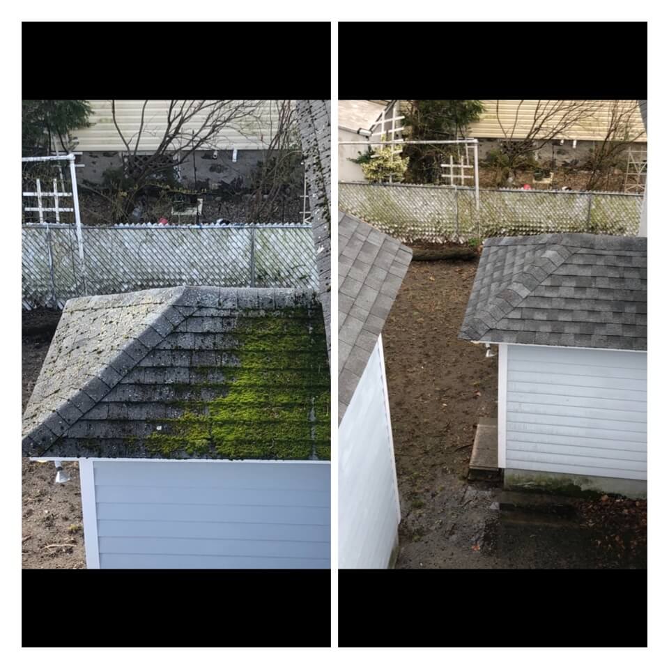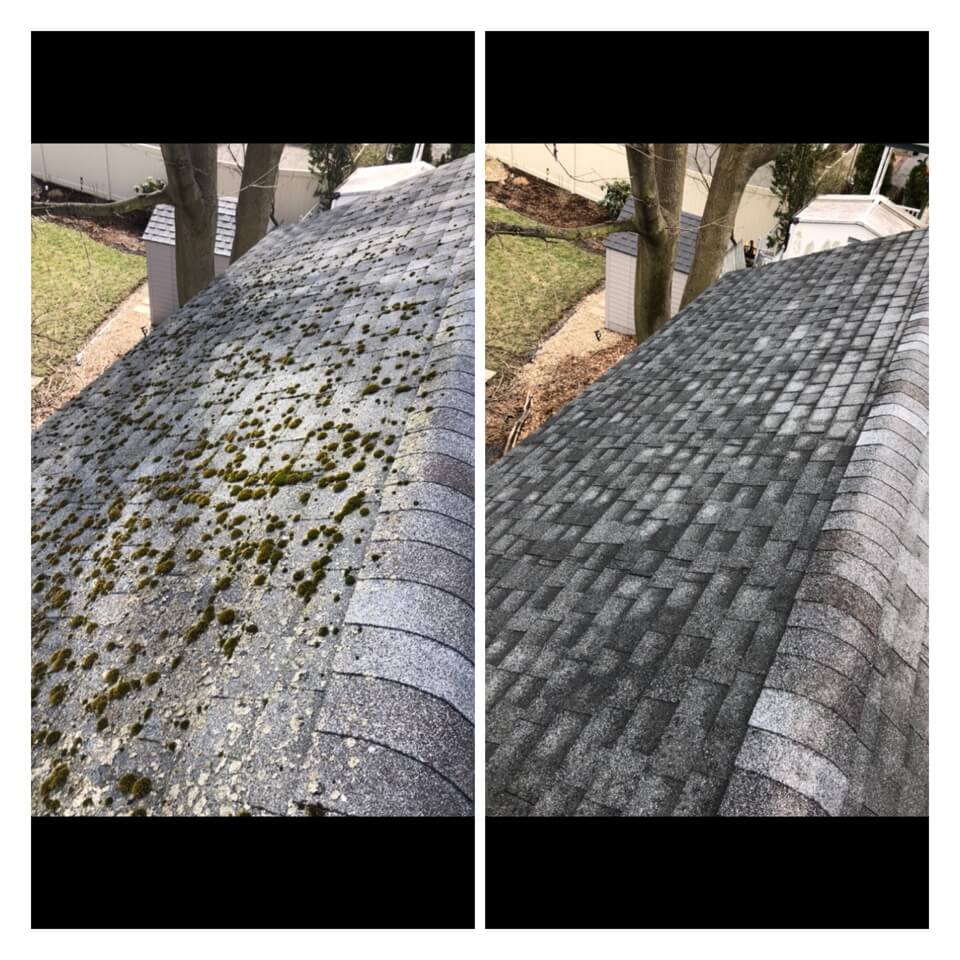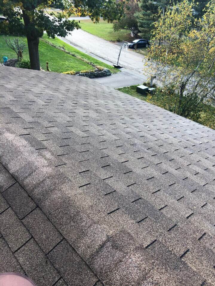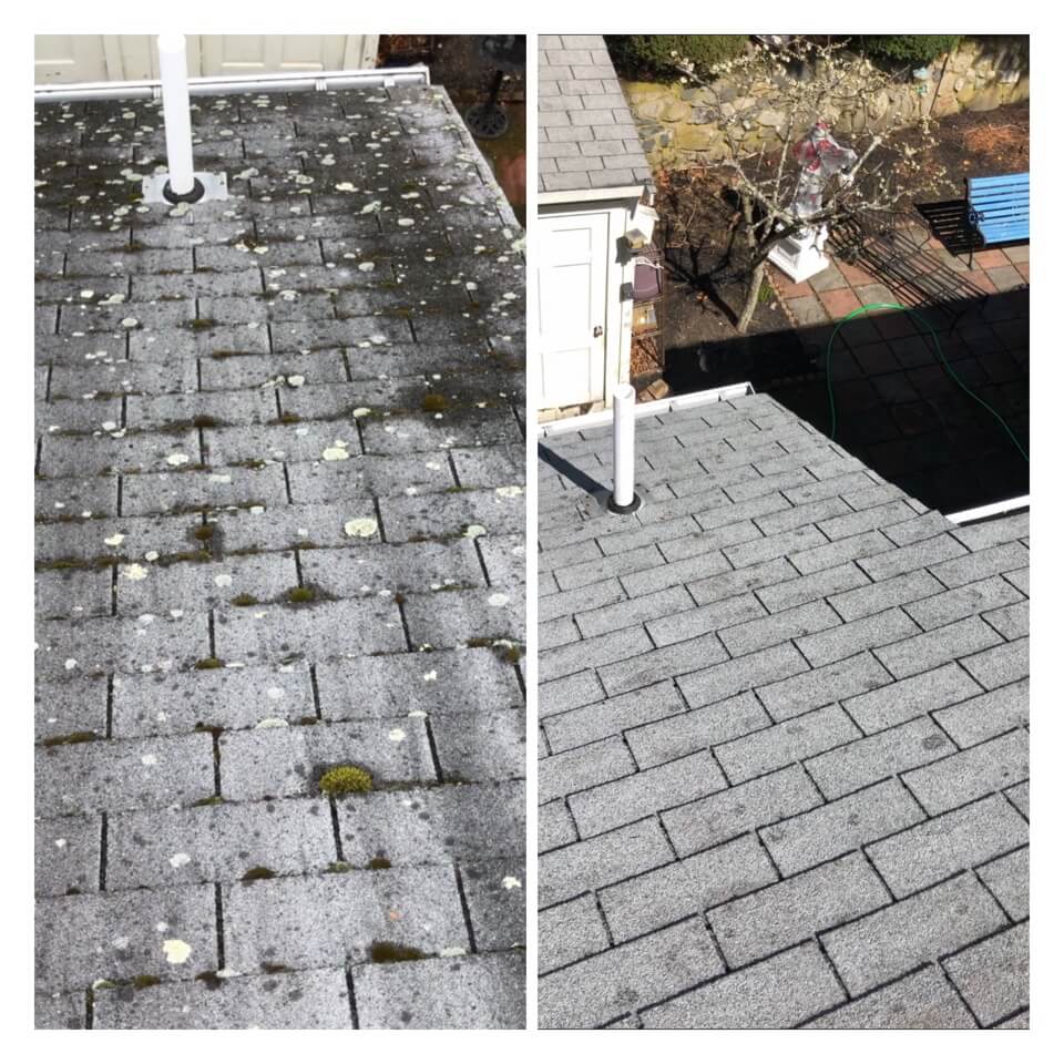 HiCleaners is the most experienced company in Easton, MA that deals with roof washing and roof soft washing. All of our employees are trained to recognize precise solution mixing ratios to provide you with the safest and most effective soft washing service. Roofs are a commonly neglected part of a house due to the fact that most people don’t have ladders to access it, so it is very easy to just leave it alone and forget about problems that may start to arise. Just like many home owners, discoloration and small bits of moss on a roof can be overlooked because of the misconception that it is just aesthetic. However, it isn’t just aesthetic, the moss slowly lifts the granules off the shingles which in turn shorten the life of the shingle. The moss also spreads, just like any bacteria if it is left alone for too long, it can quickly become a problem that spirals out of control. Call HiCleaners for a free quote, we only use the most advanced eco-friendly solutions and equipment to make sure the job is done right, for the safety of the employees, your plants, grass, pets, and children.